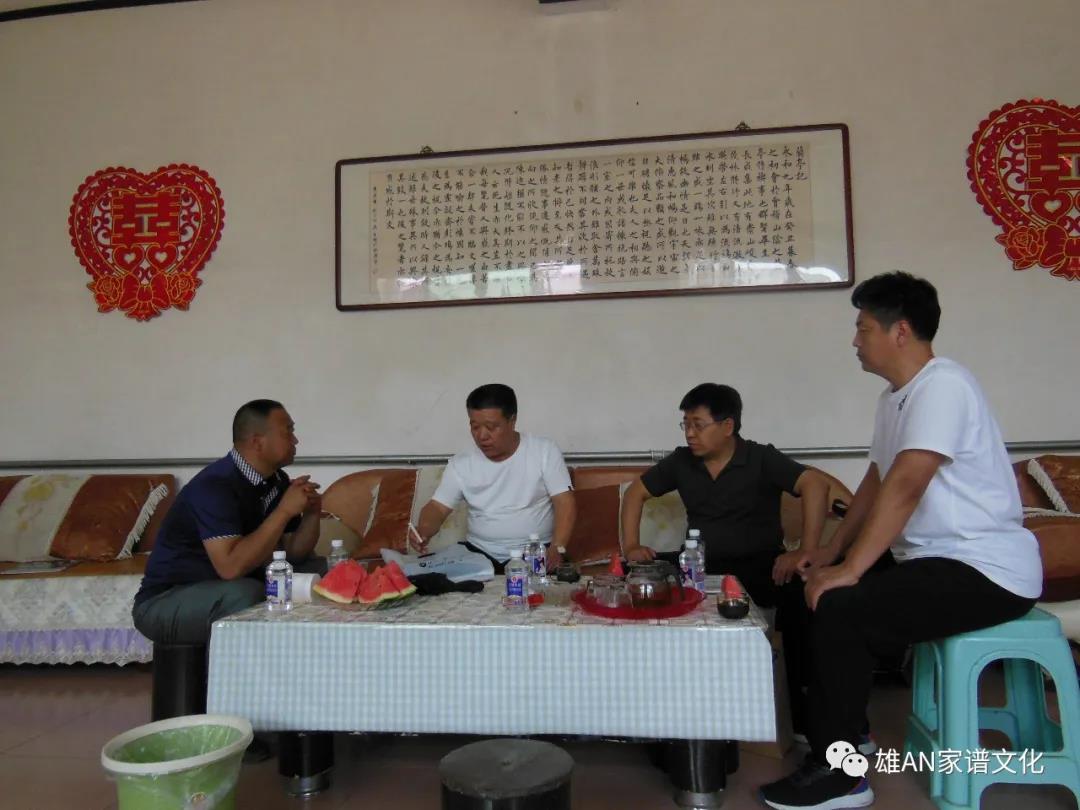 2020年6月13日下午,为了充分了解徐氏家族的历史和人物故事,家谱图书《我们的老爷爷、老奶奶---雄安家谱中的优秀人物》、《雄安优秀家风家训》的编辑人员一行四人赶赴雄县七间房梁沟一村,实地采访《徐氏家谱》持有人徐占良,与之对接的家谱图书稿件的创作者、河北作家协会会员、《雄安温梦录》作者周永战先生和徐占良先生进行了交流,深入了解了《徐氏家谱》的深厚底蕴,收集了大量徐氏家族的故事素材。
